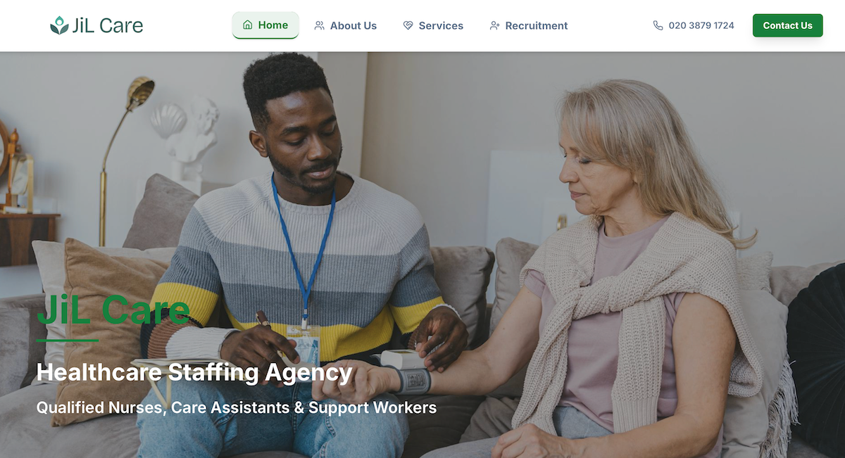 JiLCare Healthcare Agency is a Professional healthcare staffing agency providing qualified nurses, care assistants, and support workers across the UK, that needed a professional website to launch their brand and attract clients.